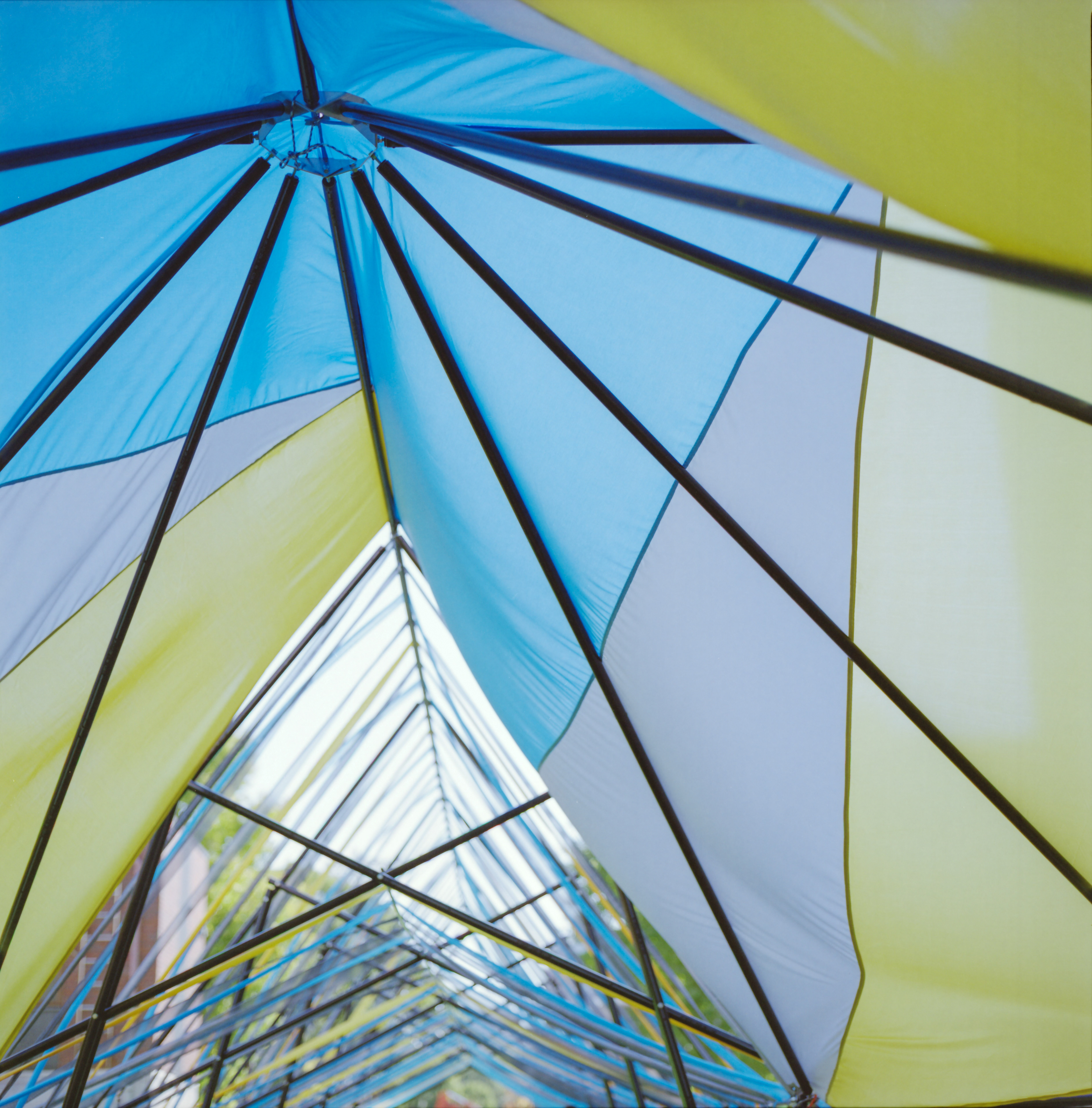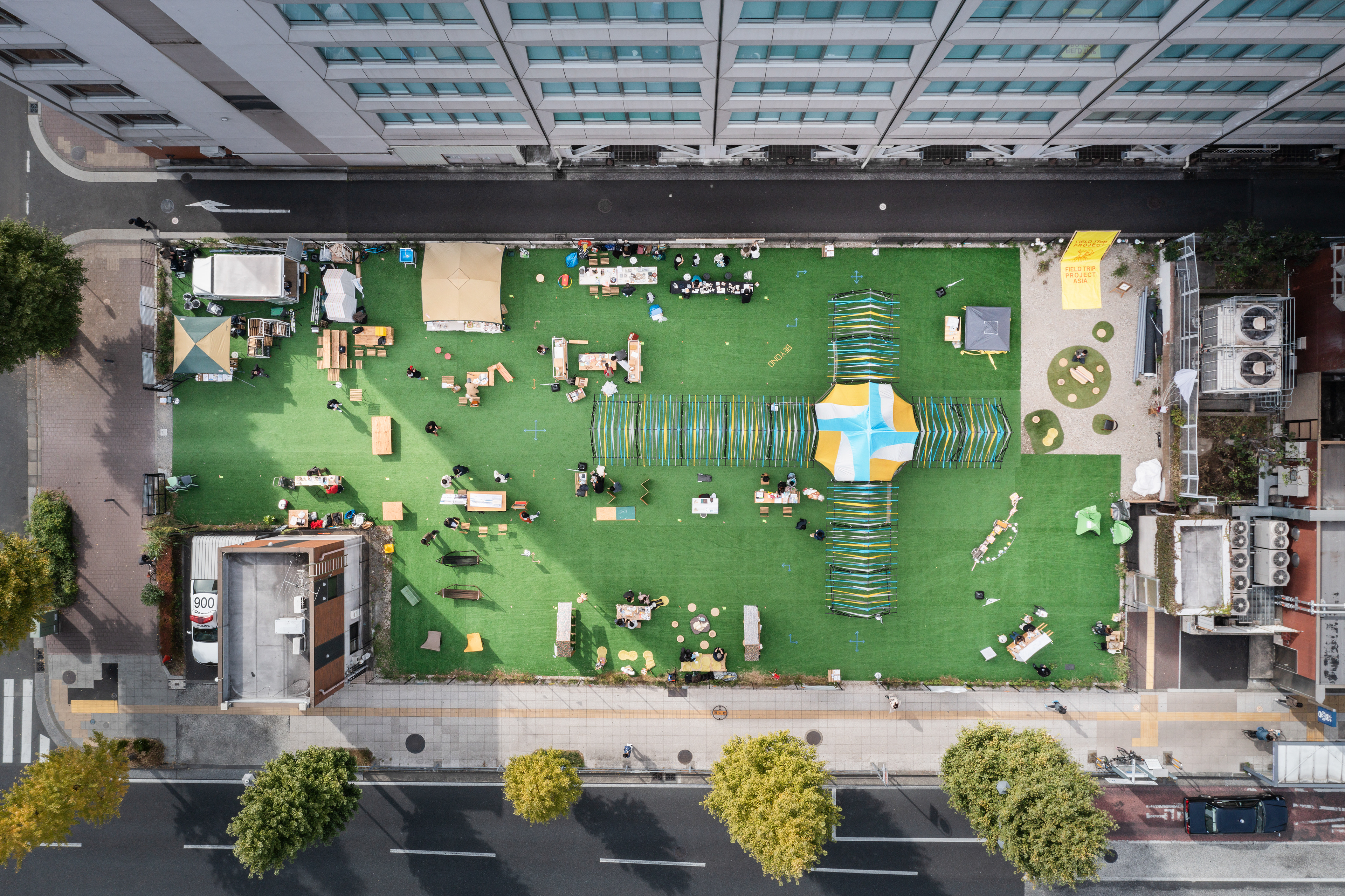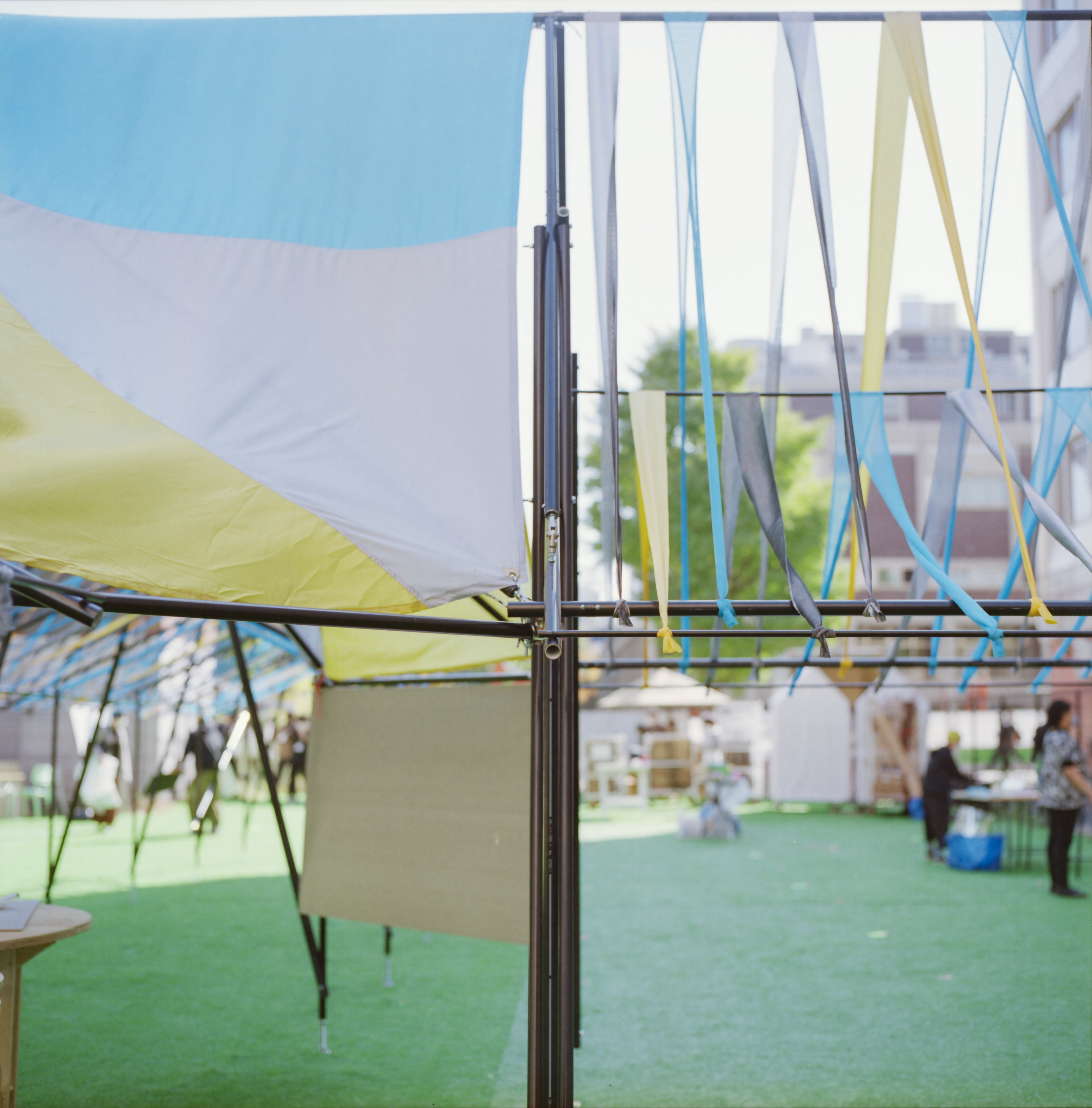 横浜のクリエイターが公共空間活用をしながら、活動を発信していくイベントで過去13回の歴史があり、これまでもこれからその敷地と形を変えていくことが予想された。そんなパヴィリオンをデザインするにあたり、素材としてもシステムとしても強度の確かなものを作るべきだと考え、FRP パイプを主体としたフレームをデザインした。このフレームは簡単な工具で組み立てられ、それらを組み合わせることにより様々な形とあり方を変えられる。時には小さなテントのように人のささやかな活動を支え、時には大きな教会堂のように広場と居場所を作ることができる。