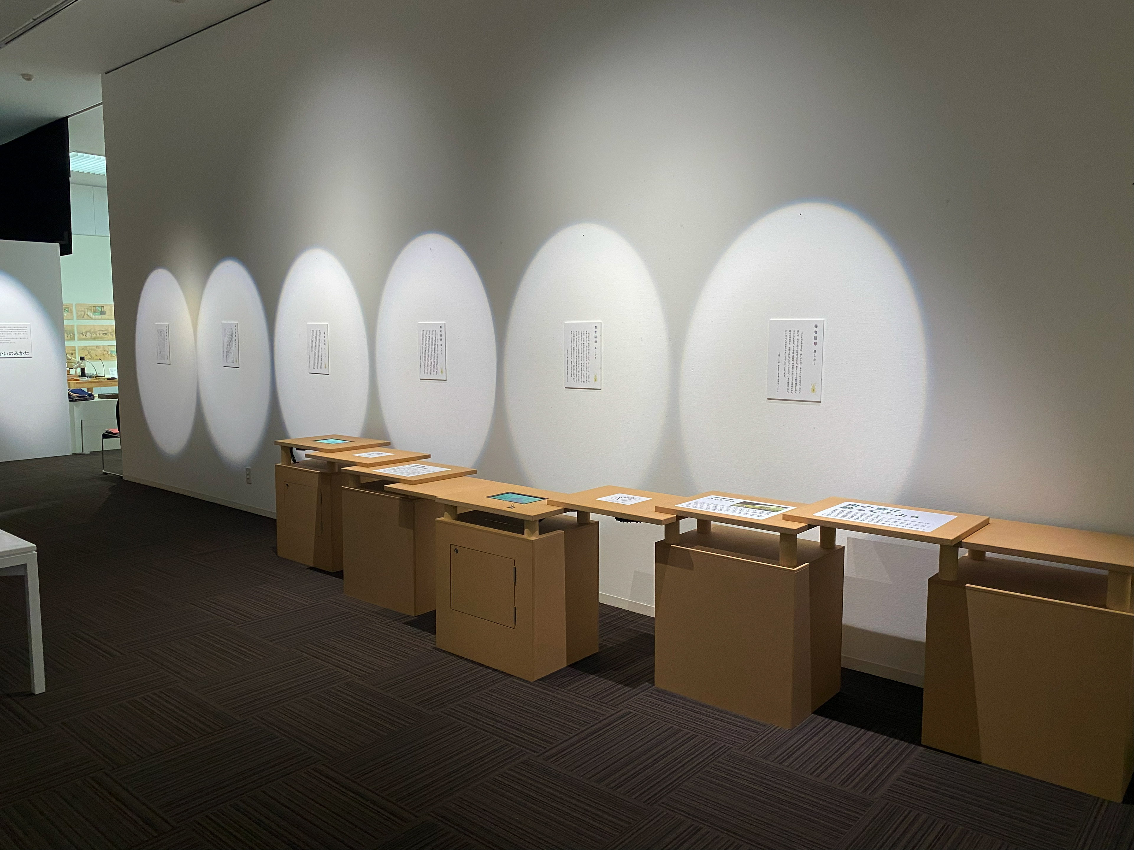 「標本テーブル」は展示室に滞在し、観察し、研修するための什器で、美術品のように「みる」だけでなく、考えながら身体で感じ、考える展示を行うための装置として機能する。