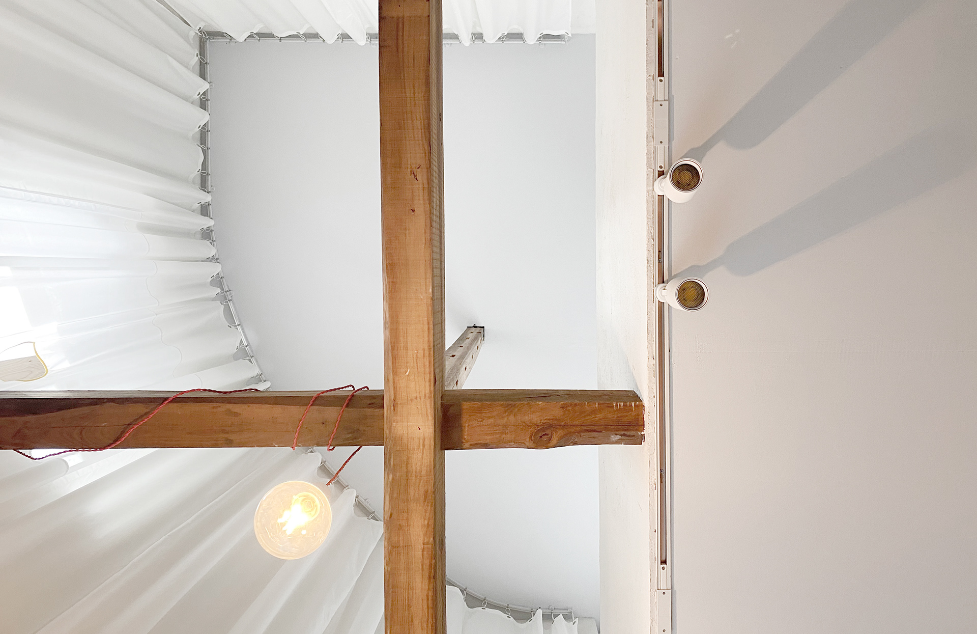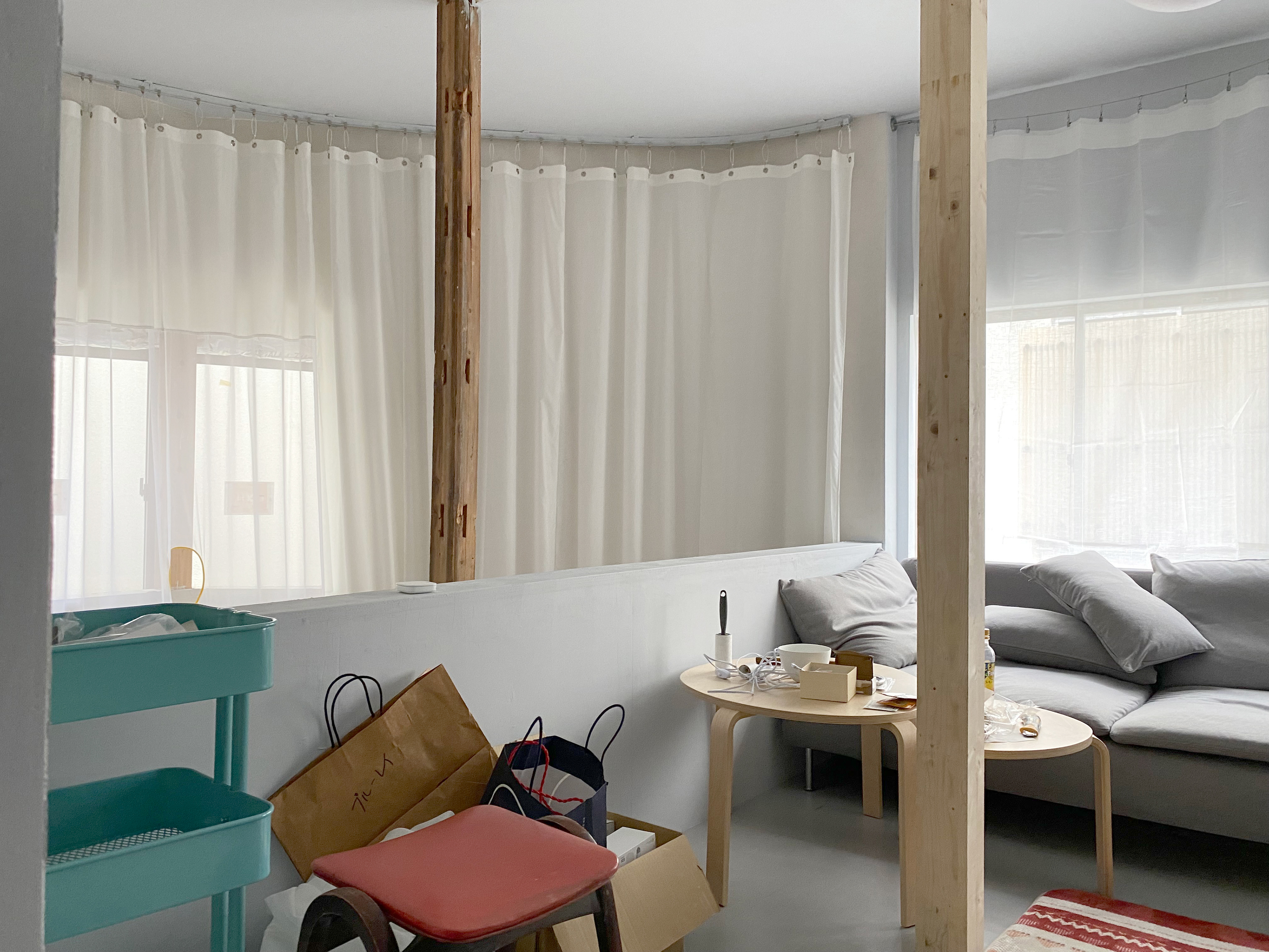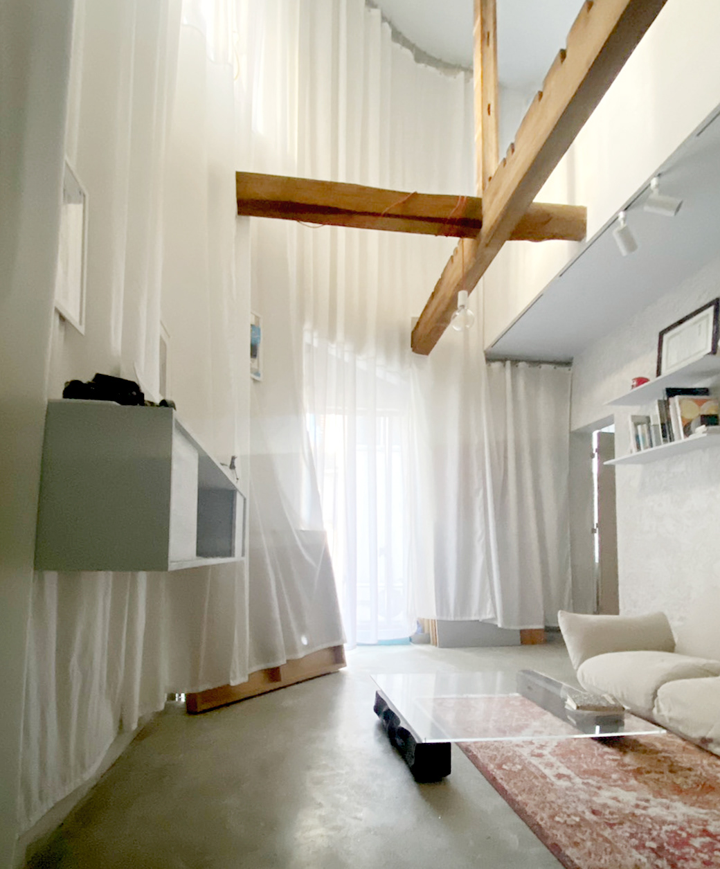 既存基礎の内側に基礎を打ち増し、内壁を立ち上げ、断熱材と空気層を作り、既存構造と一体化させ補強していくための新しい内周部(ライニング)を作った。「装い」から空間を構成する事、例えば建築と装飾の間に元々あった一体の関係を取り戻すような、そんな装いと生活が繋がっていく住宅を目指した。