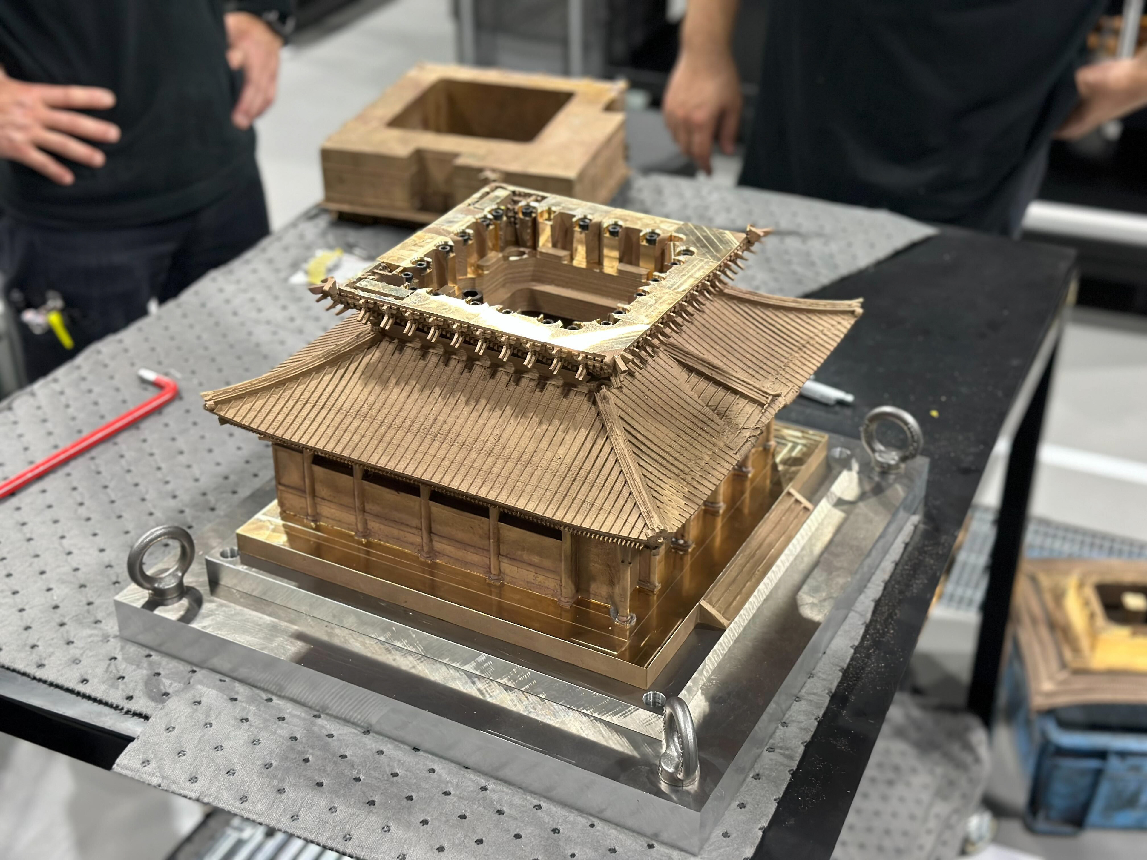 「目の見えない人は建築を、文化財を誰かと一緒に同時に楽しめない」そんな相談を受けたことから始まった。文化財の多くは音声案内と点字があるが、音声ではタイムラグがあり、点字はすべての人が読めるわけではない。また多くの文化財には直接触ることはできない。そんな現状を踏まえて、だれもが触り・頬ずり・嗅ぐ事ができる小さな建築をブロンズで建築した。